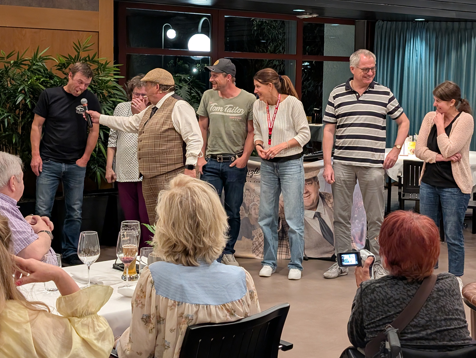 Max Bünzli begeisterte das Publikum mit viel Witz, Charme und einer herrlich lockeren Art. Immer wieder verstand er es, die Gäste direkt ins Geschehen einzubeziehen und sie zum Mitmachen aufzufordern. Gerade diese spontanen Momente sorgten für viele Lacher und machten den Abend besonders lebendig. Teilweise wurde so herzhaft gelacht, dass sogar Tränen flossen.