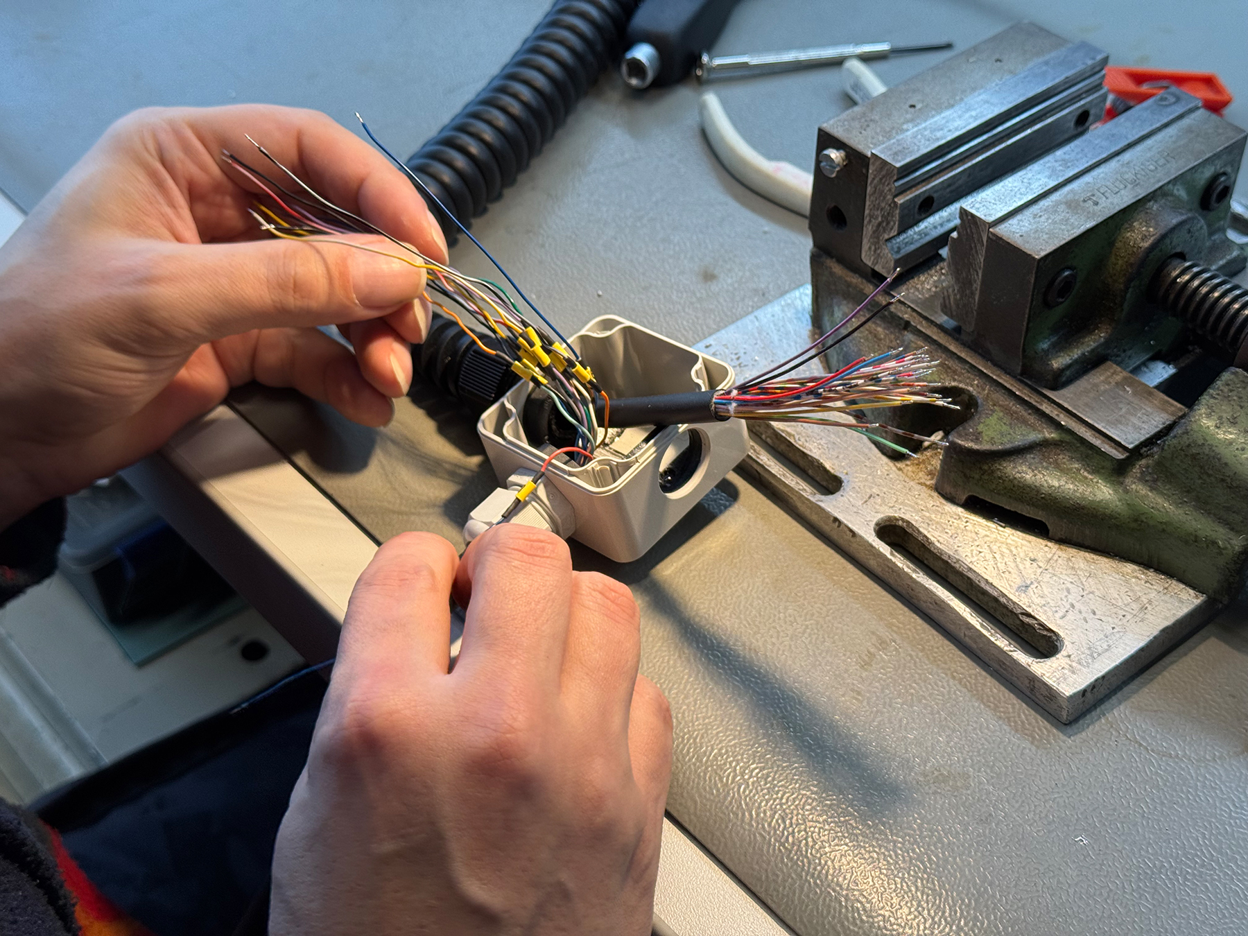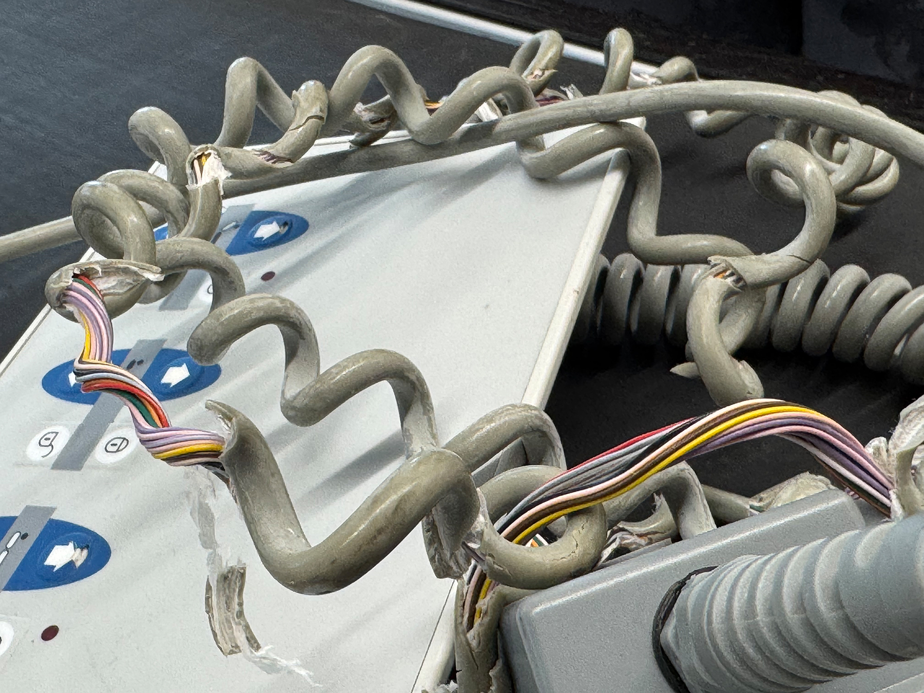 Der Fokus dieses Auftrags liegt auf den Spiralkabeln, die durch den täglichen Einsatz von Reinigungs- und Desinfektionsmitteln über die Jahre spröde geworden sind. Ein Risiko für Funktion, Sicherheit und Langlebigkeit.